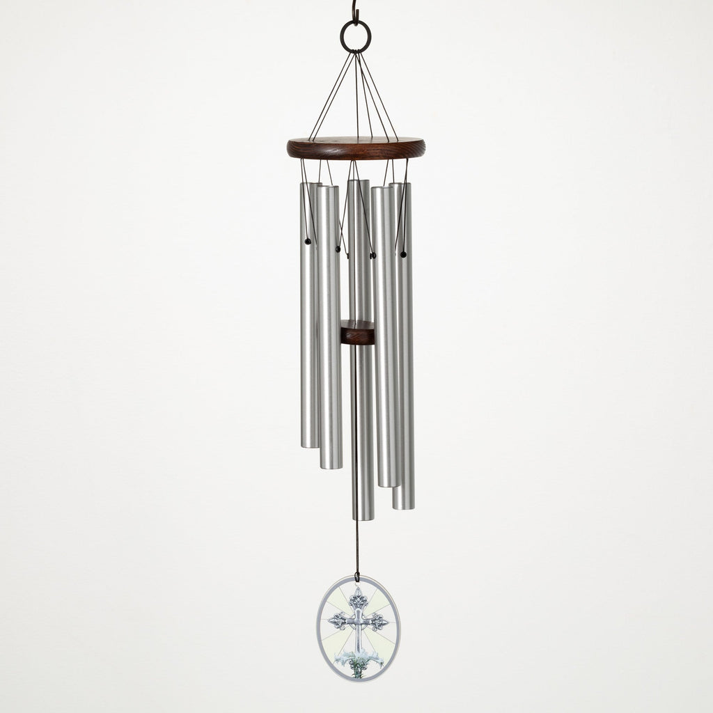 Bring the serenity of ancient Japan into your home or garden with this elegant memorial wind chime. Handcrafted by the renowned brand Woodstock Chimes, the glass feather design is UV printed with a lily and cross motif for a thoughtful tribute. You will have years of pleasurable sounds reminiscent of the Japanese Koto, the musical instrument from which it gets its beautiful tuning. Constructed from aluminum, it's a timeless memorial gift to honor a loved one. And with a lifetime tuning guarantee, you can trust its harmonious melodies will continue to bring tranquility for years to come.