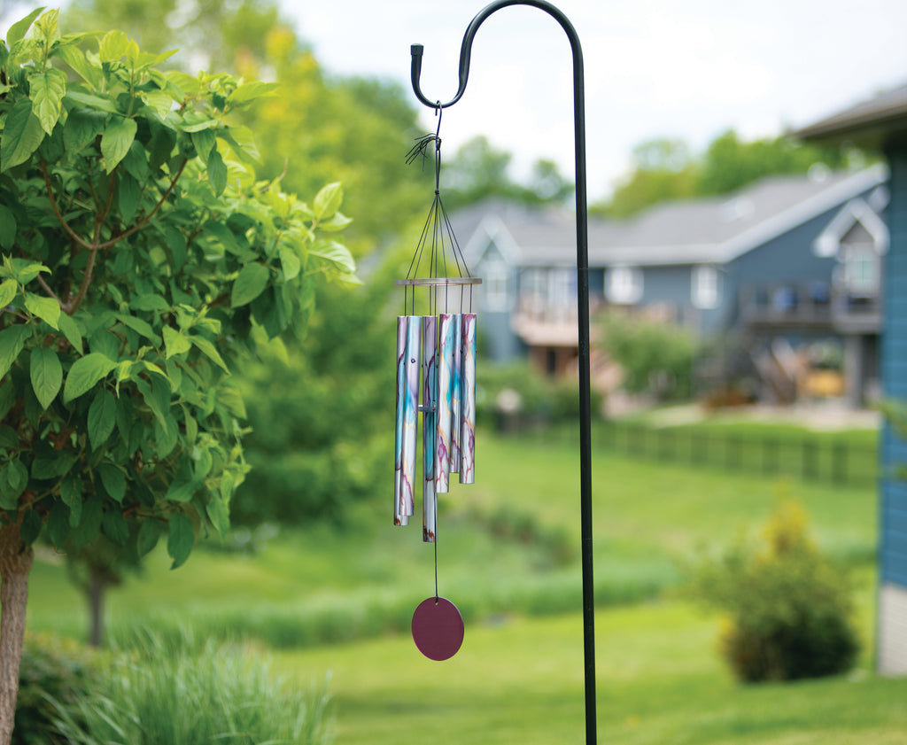 Soft color, serene sound—this chime brings harmony to every breeze. The acrylic top, clapper, and feather feature a dreamy pastel marble design, adding a modern yet gentle accent to your outdoor décor. Six UV-printed tubes are precision-tuned to a peaceful pentatonic scale, creating soothing, melodic tones with every movement of air. The feather windcatcher is removable for easy personalization—leave it as is or make it uniquely yours. Perfect for patios, balconies, or garden spaces, this chime is a calming blend of art and sound, crafted to turn everyday moments into peaceful reflections.