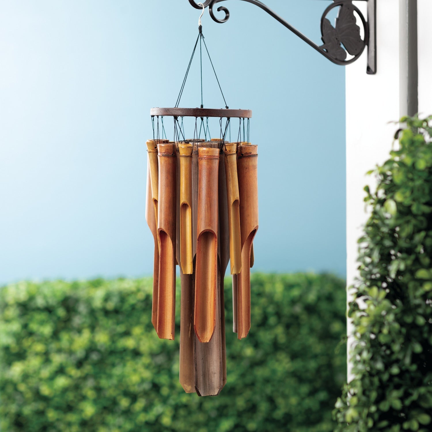 This soothing bamboo chime features three sizes of bamboo tubes, creating a trio of tropical sounds.