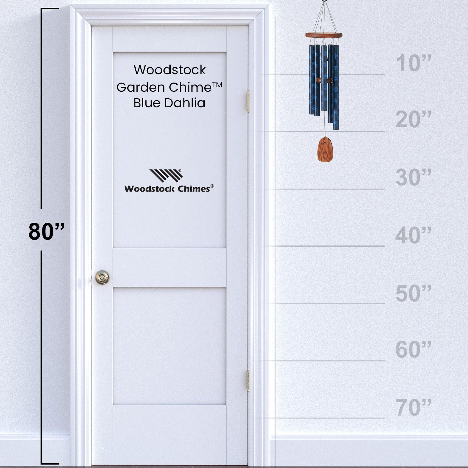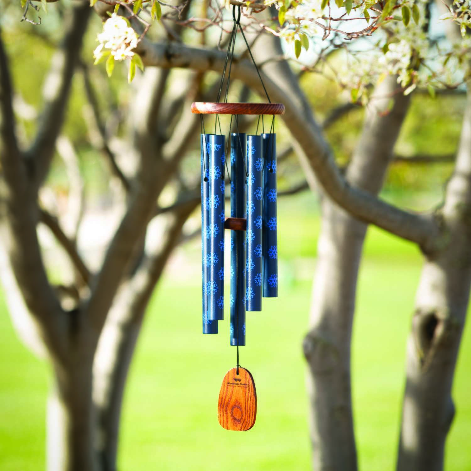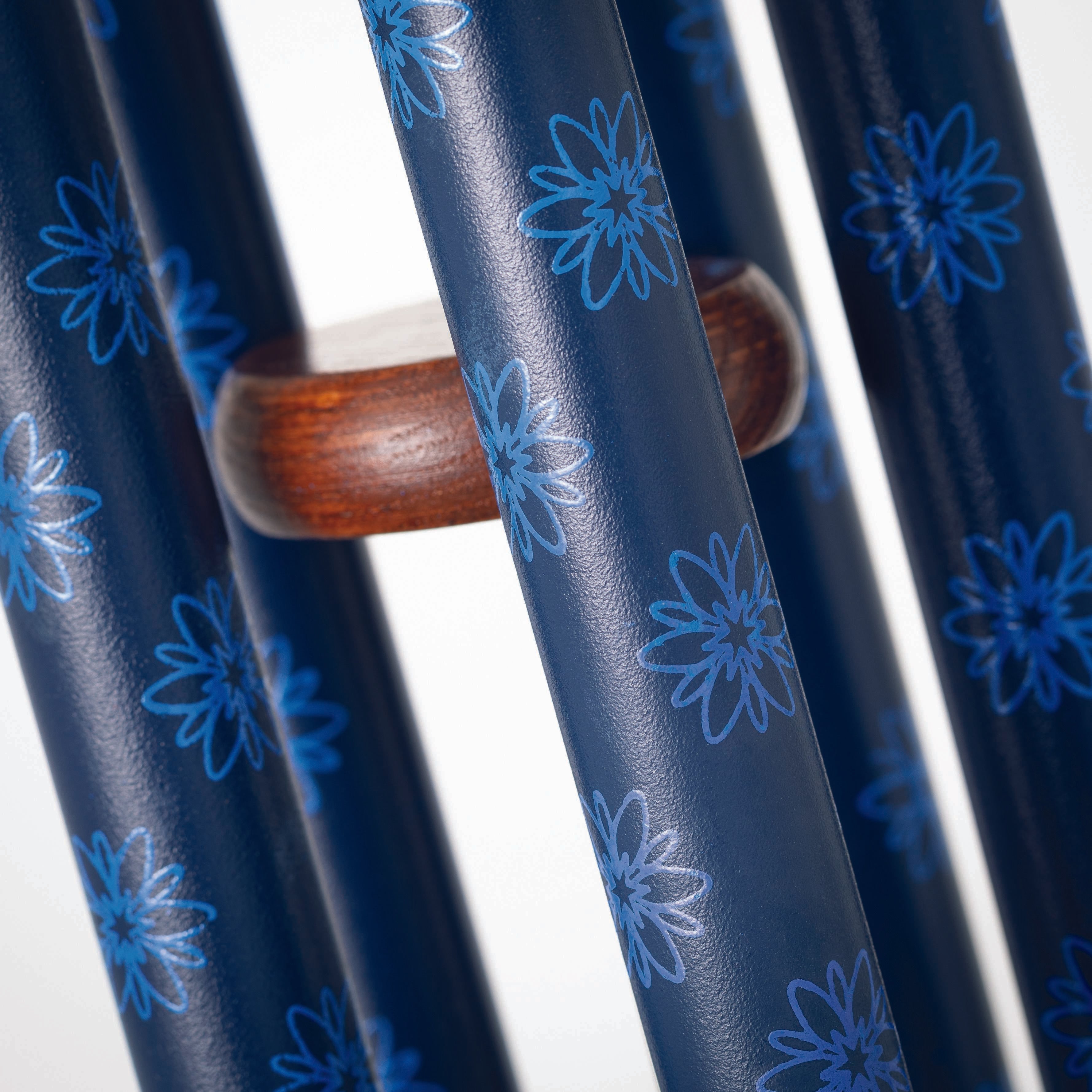 Tuned to a harmonious pentatonic scale, this chime features dahlia flowers silk-screened on its colorful tubes. Spaniards reported finding dahlias growing in Mexico in 1525. They were used as a food source by indigenous peoples, gathered in the wild, and cultivated. The Aztecs used them to treat diseases. Today, they are grown in vast colors, with the flower head resembling a star with surrounding rays. There are now more than 57,000 registered cultivars, which are officially registered through the Royal Horticultural Society.