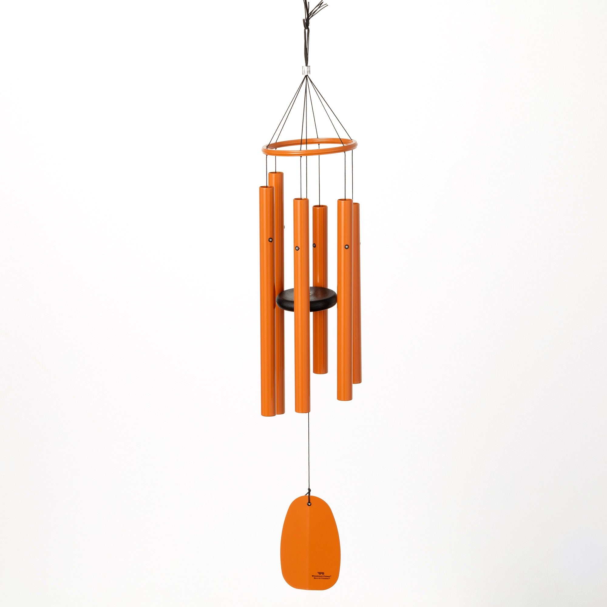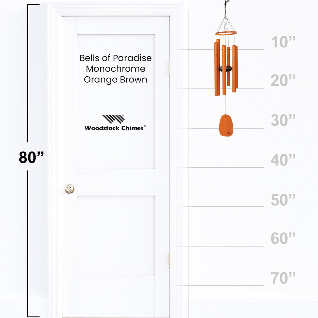 This modern, minimal wind chime has the soul of an ancient melody. Six aluminum tubes in a striking monochrome orange-brown satin finish are specially suspended to resonate longer than ordinary chimes. Tuned to an ancient musical scale, each stirring breeze triggers a soothing symphony that encourages mindfulness and relaxation. The aluminum ring and sturdy styrene clapper ensure a rich, long-lasting sound quality that's backed by a lifetime tuning guarantee. The contemporary aluminum design brings modern style to this timeless acoustic experience. Whether accenting your patio or garden, these chimes add a sculptural focal point while delivering the calming audio textures of nature's lullaby. Get lost in the meditative resonance-and leave the ordinary wind chimes behind.